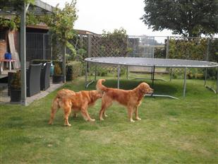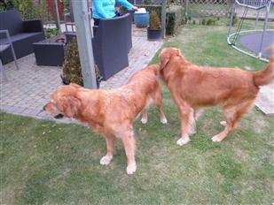 Ein erneutes Date der beiden Turteltauben. Diesmal ein etwas anderes Bild - Amy entfernt sich mehr von ihrem Frauchen Petra, sie und Cartouche "tanzen" fast miteinander, Amy wirft sich nach wie vor zwar hin und wieder auf den Rücken wenn er versucht aufzureiten, ist aber nicht mehr abgeneigt. Dann nach bereits 10 Minuten passiert es, Amy steht perfekt und Cartouche reitet auf, nach mehreren Versuchen ins Leere ist er endlich da wo er hin soll. Petra hält ihre Hündin anschließend stützend vorn, ich halte Cartouche hinten und wir beruhigen die Hunde. Fast 20 Minuten hängen sie aneinander!