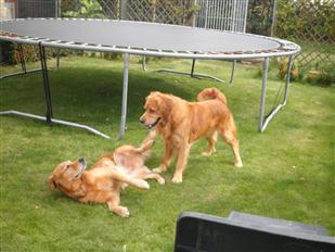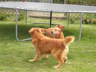 endlich biegt das bekannt riechende Auto um die Ecke - es folgt das Wiederholungsdate! Cartouche ist nach wie vor sehr angetan, Amy viel distanzierter als am Tag vorher, animiert ihn wenig. Cartouche reitet zig Male auf, trifft aber meist nicht richtig. Wir machen eine kleine Pause, damit sich vor allem Cartouche etwas erholt und versuchen dann noch einmal. Es kommt uns so vor als ob vor allem die Hauptperson Amy uns sagen möchte, dass das gestern ja schon gereicht hat. Die beiden liegen anschließend ganz lieb nebeneinander in der Hütte während die Hundebesitzer noch Formalitäten erledigen. Wir vermuten und hoffen, dass die beiden Hunde Amys Tag X wahrscheinlich am genauesten kennen und so warten wir mal auf das Ergebnis in ca 3 Wochen.