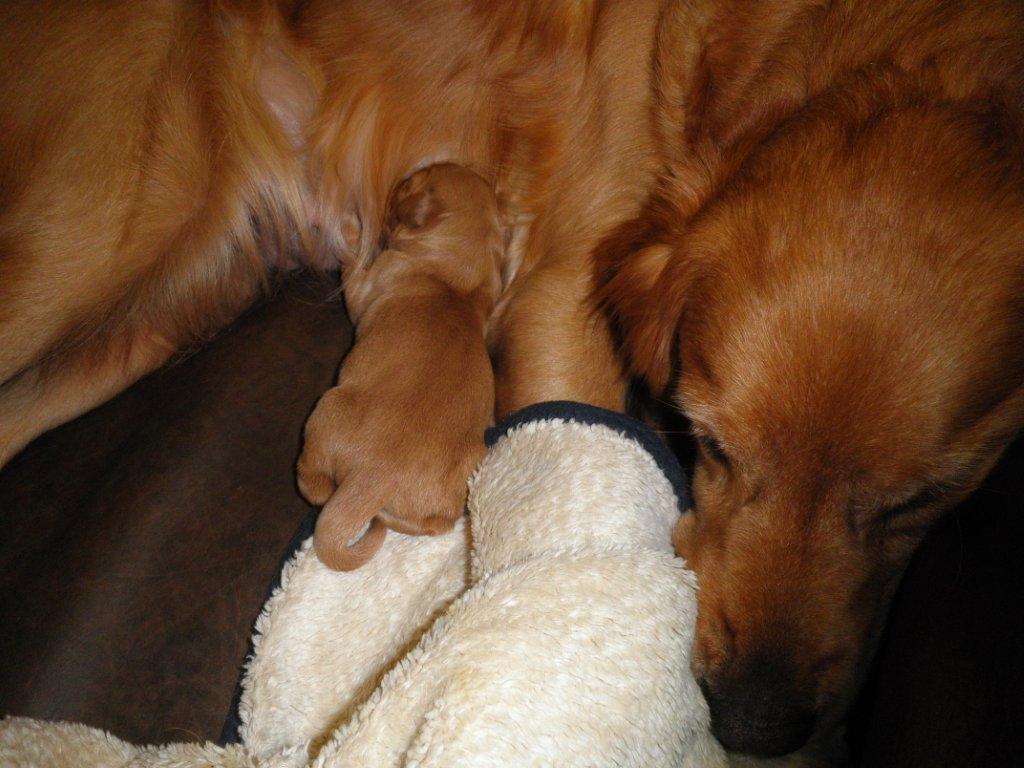 Am 29. November um 12:42 Uhr kam in Wilhermsdorf, unser D-Wurf zur Welt! Es gab nur einen Insassen in Amys Bauch! Digger-Djuke mit 520 g wurde von Amy ohne Probleme auf die Welt gebracht und sie hat alles sehr instinktsicher gemeistert. Nun ist er da und wird unser neues Rudelmitglied für hoffentlich viele Jahre sein. Eine neue Herausforderung für mich!! Ein Rüde! Da bin ich ja mal gespannt, was da so auf uns/mich zu kommt... Es wird auf jeden Fall spannend, das ist klar! Aber ich freue mich, dass alles gut gegangen ist und der Zwerg auf "normalen" Weg ins Leben gefunden hat. Amy ist schon etwas irritiert und ich glaube auch unterfordert, aber das ändert sich vielleicht ja bald ) Viele Grüße von Petra mit Brave Amy, Digger-Djuke und Bliss im Herzen